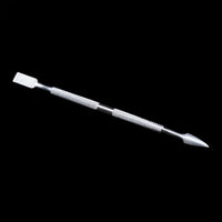 Pousse Cuticules à Bout Carré. Sa forme carré plate et tranchante permet de gratter le cuticule qui adhère à l'ongle. La partie pointue permet de gratter les coins difficile à atteindre de l'ongle.