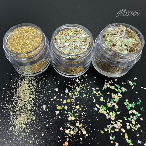 Chaque trio contient trois types de paillettes translucides afin de créer l’effet souhaité: