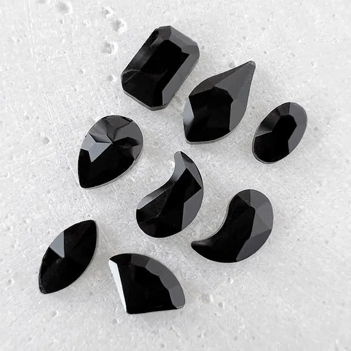 Taille: Rectangle 4x6mm; œil de chat 6×4 mm; feuille 8x4mm; goutte 6×4 mm; Virgule droite et gauche 4×9 mm; petit ovale 3×5 mm; forme diamant 4x6mm.