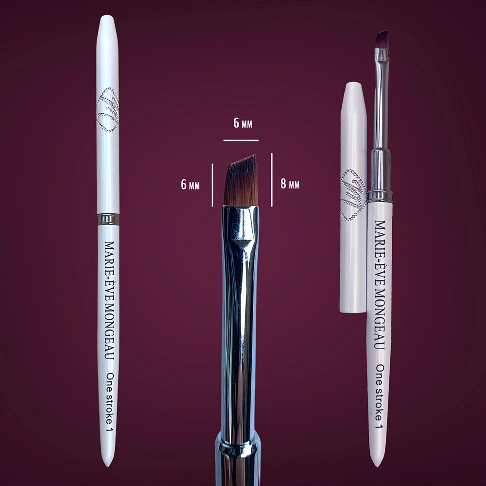 One stroke 1 grand - Ce format est utile à vos premiers étages de pétales, les plus gros. Le trio à adopter pour le one stroke, vous permettant de faire différents formats de pétales très facilement. Le poil en biseau rend le mouvement plus facile. 8mm plus haute longueur, 6mm plus petite longueur.