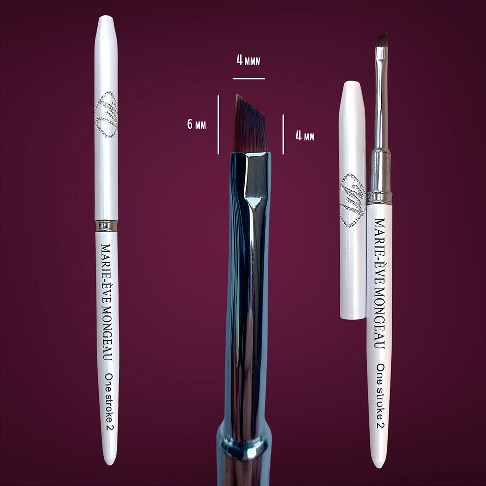One stroke 2 moyen - Ce format est parfait pour celles qui préfèrent utiliser un seul et même pinceau pour toute la fleur. Personnellement, je m’en sers pour les pétales de grosseur moyenne. Il sera aussi très pratique pour faire des designs graphiques linéaires, comme de l’abstrait ou du carreau, qui est toujours tendance à l’automne et l’hiver. 6mm plus haut longueur, 4mm plus petite longueur.