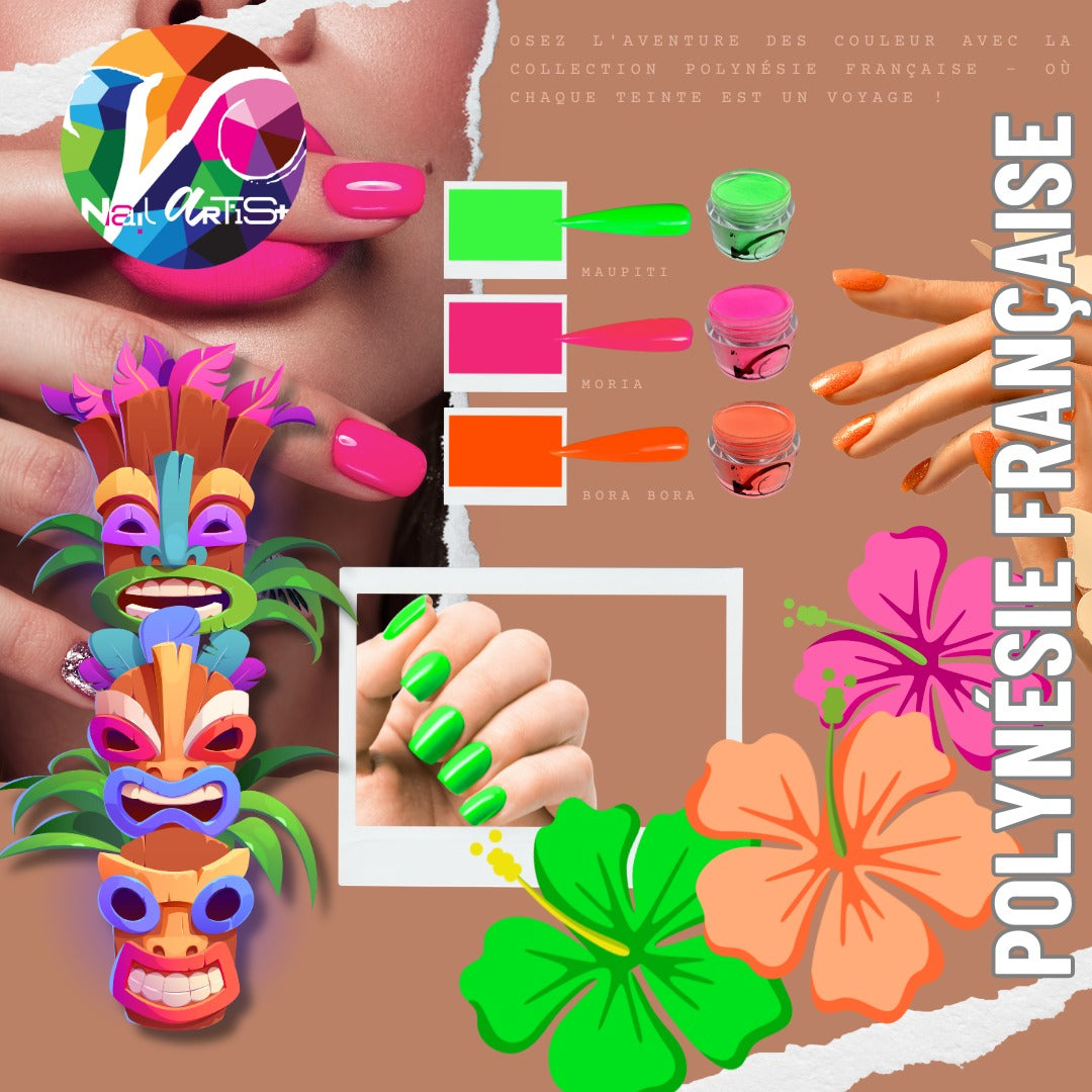 Plongez dans la beauté paradisiaque des îles de la Polynésie Française avec notre nouvelle collection, spécialement créée pour les techniciennes d'ongles passionnées de couleurs vibrantes et de thèmes tropicaux. Cette collection éclatante comprend trois teintes vives qui capturent l'essence des paysages idylliques et de la culture riche de ces îles :